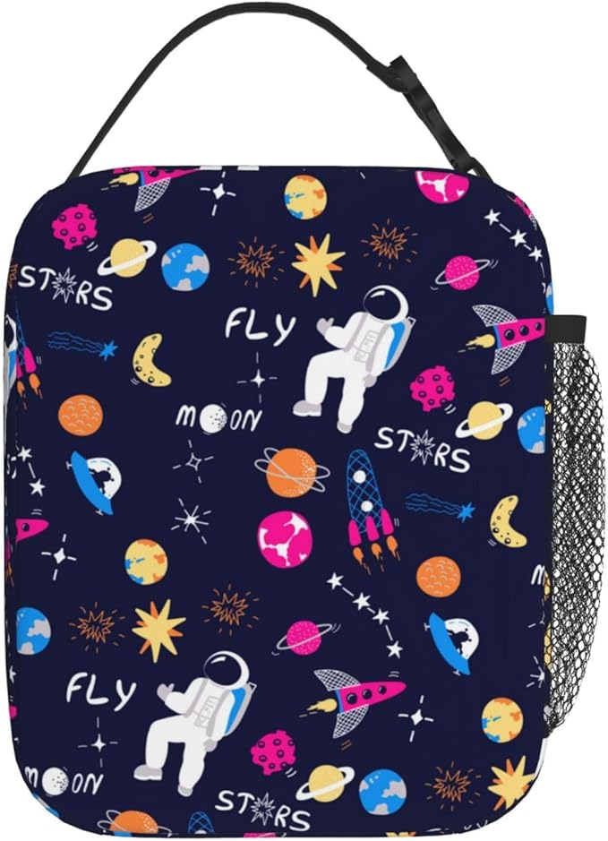Planet Astronaut Lunch Bag for Women Men Kids Insulated Reusable Lightweight Lunch Box with Water Bottle Holder Suitable for Girls Boys Space Lunch Box (Universe)