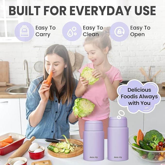 - 【EXCELLENT CRAFTSMANSHIP】The double-layer lid design enhances heat preservation. The outer lid doubles as a small bowl, while the inner lid features a sealing rubber ring to prevent leakage and overflow. The outer lid includes a carrying handle for easy carry. The inner lid is designed to be opened, allowing water vapor to be released through the pressure relief plug promptly. This design keep that the jars will stay dry and clean when not in use.