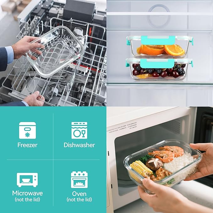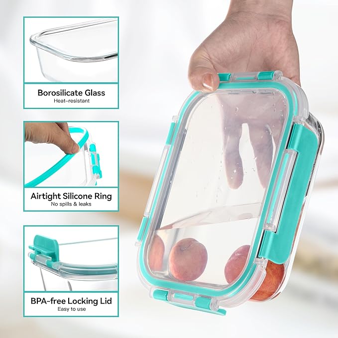 - AIRTIGHT SEALED LIDS: Equipped with BPA-free plastic lids featuring silicone seals, these glass storage containers with lids keep your food fresh longer while preventing leaks and spills. Ideal for bringing meals to work, the gym, or on picnics.