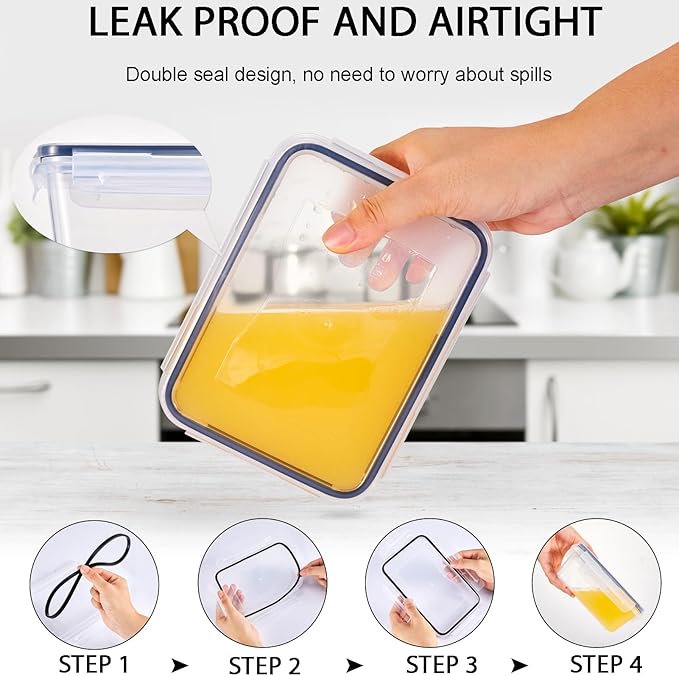 - Leak-Proof & Keep Fresh: Each lid of our plastic storage containers features silicone sealing strips and 4-sided latches designed to ensure an airtight and leak-proof. You will never have to worry about food or liquid spills again when you use this containers for food. Keep your fridge clean and say goodbye to fridge odors.