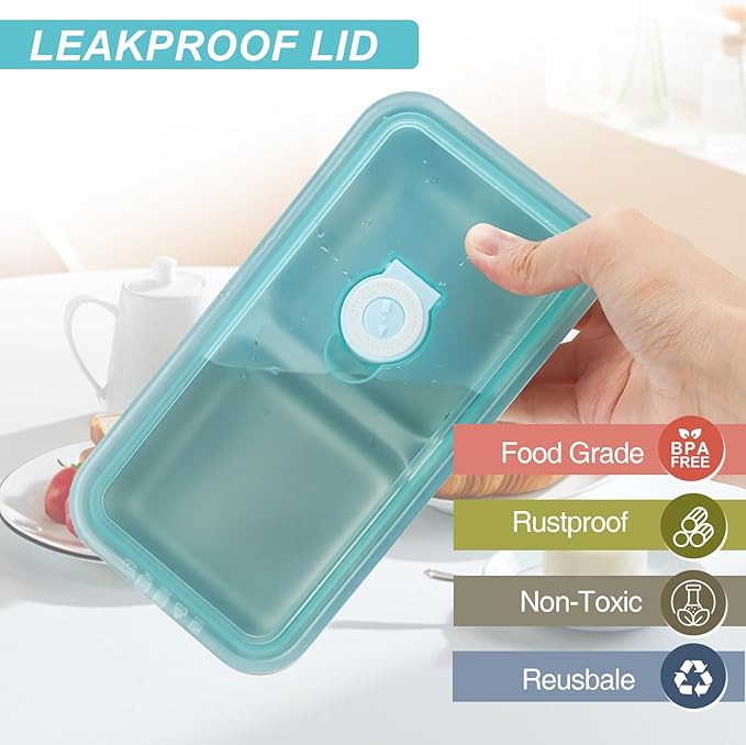 - 【Leakproof Silicone Lid】 Every lid of the snack box container is equipped with leakproof sealing ring , date recorder and sealing valve to help you keep food fresh, accumulate and release air easily. Anti-leakage design will always keep your kitchen and backpack neat.