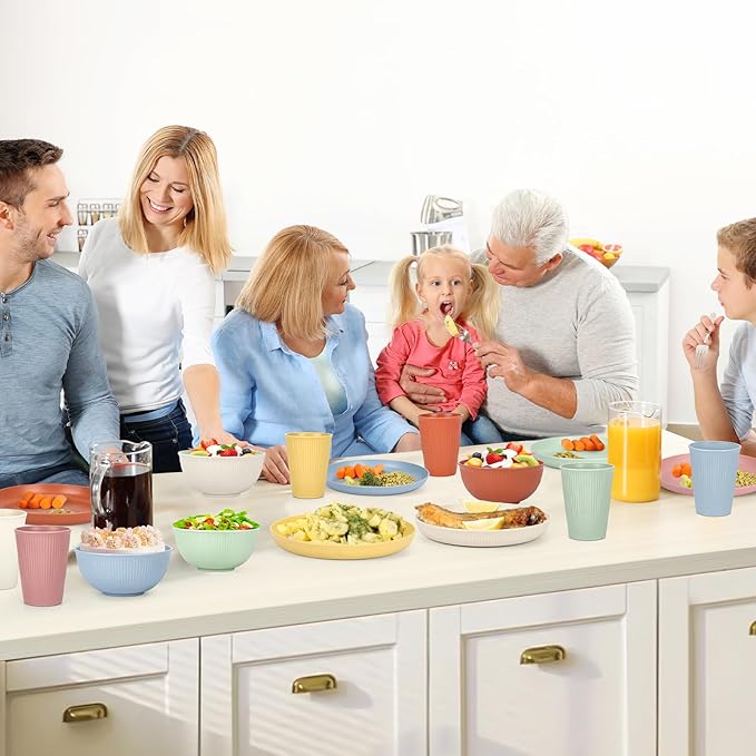 - Choice for a Healthier Home: This 18pcs set is made from natural wheat straw fibers. Food grade 100%BPA-free. Safe, sustainable and unbreakable, it's perfect for families