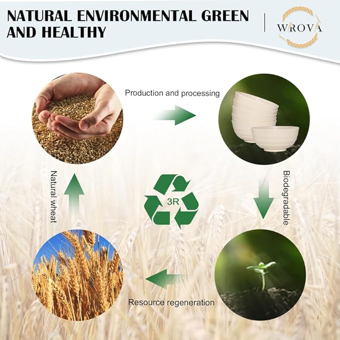 - 【Wheat Straw Materials】These beige 60oz bowls set of 6 are made of natural organic wheat straw fiber, the material is non-toxic,odorless. There is no plastics and harmful chemical materials. Very healthy and beautiful tableware for your family.