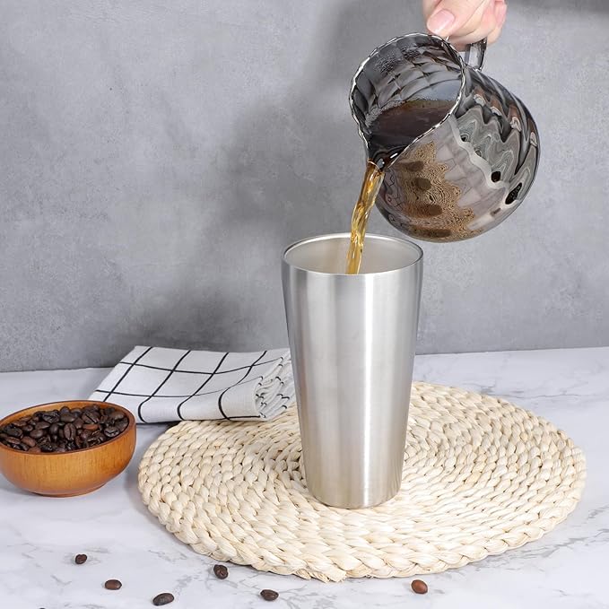 Beasea Stainless Steel Cups 19 oz, 2 Pack Large 18.6oz 550ml Stainless Steel Water Drinking Tumbler Stackable Double Wall Insulated Metal Pint Glasses Tin Cups for Home Party Camping