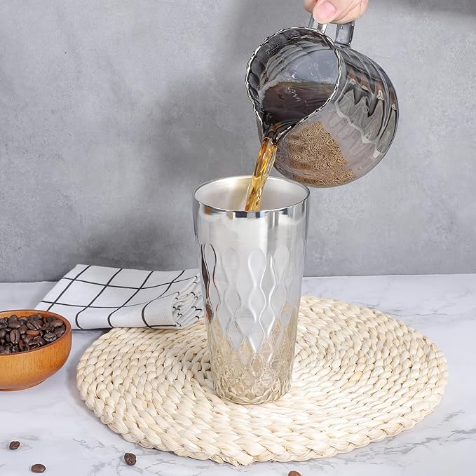Beasea Stainless Steel Cups 19 oz, 4 Pack Large 18.6oz 550ml Stainless Steel Drinking Cups Tumbler Stackable Double Wall Insulated Individual Metal Pint Glasses Tin for Home Party Camping