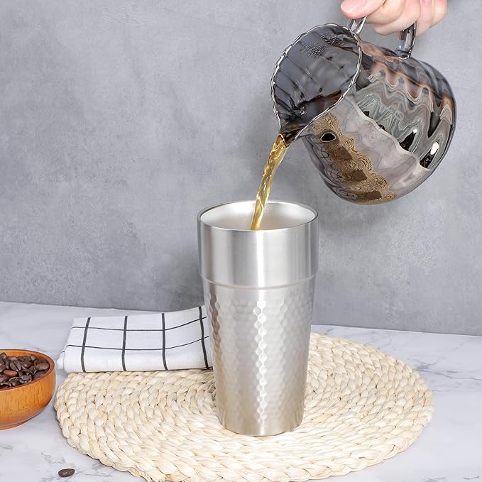 Beasea Stainless Steel Cups 19 oz, 2 Pack Large 18.6oz 550ml Stainless Steel Tumbler Stackable Double Wall Insulated Metal Drinking Glasses for Home Restaurant Office Party Camping