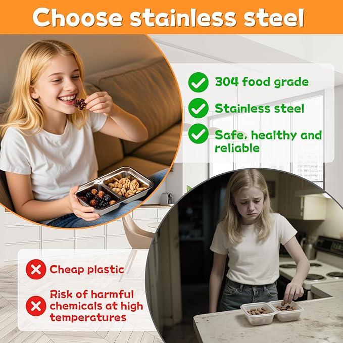 (4PCS) Grab and Go Snack Containers, Reusable Stainless Steel Snack Containers with Lids, Leak-Proof Stainless Steel Double Compartment Condiment Container, for Snacks Dips Travel