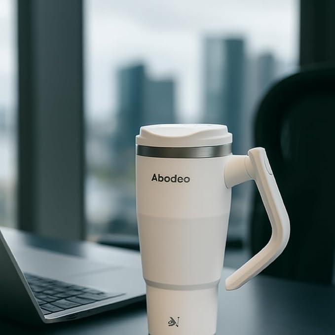 32 oz Travel Coffee Tumbler with Rotating Handle, Straw & Leakproof Lid – Insulated Stainless Steel Mug Reusable Water Flask for Hot & Cold Drinks – Fits Car Cup Holders (White)