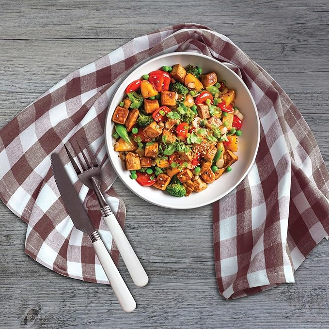 Urban Villa Kitchen Towels Set of 6 Buffalo Checks Brown/White Kitchen Towels 20X30 Inches 100% Cotton Highly Absorbent Kitchen Towels Premium Quality Ultra Soft Mitered Corners Kitchen Towels