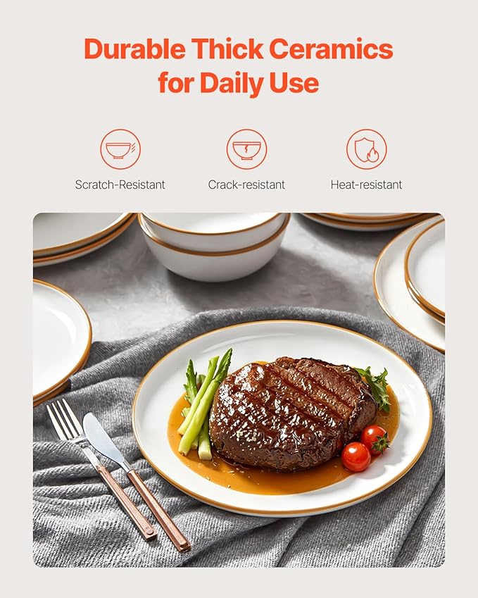 - Durable Ceramic: The thickened plates and bowls set is fired at 2372℉ (1300℃), ensuring crack resistance, scratch resistance, excellent heat resistance, and the ability to withstand frequent, long-term daily use