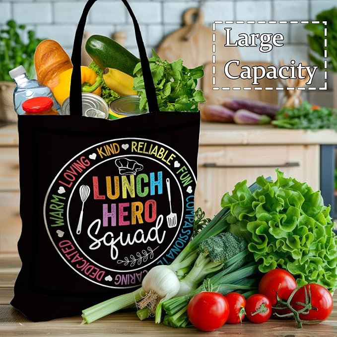School Lunch Hero Squad Tote Bag, Lunch Lady Appreciation Gifts Canvas Tote Bags for Women, Cafeteria Staff Workers Gifts Reusable Grocery Shopping Bag