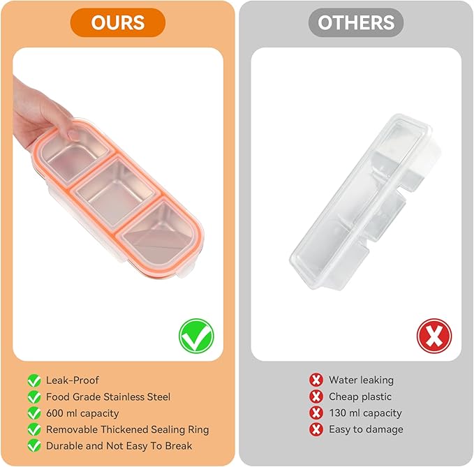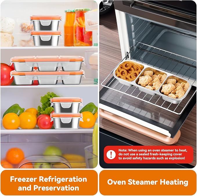 - Leak-Proof and Portable: Divided food storage containers have a strict leakproof design (silicone ring + buckle fastening), which does not spill when poured, and the sauce can be carried safely; lightweight and portable, suitable for office, travel, and outdoor activities