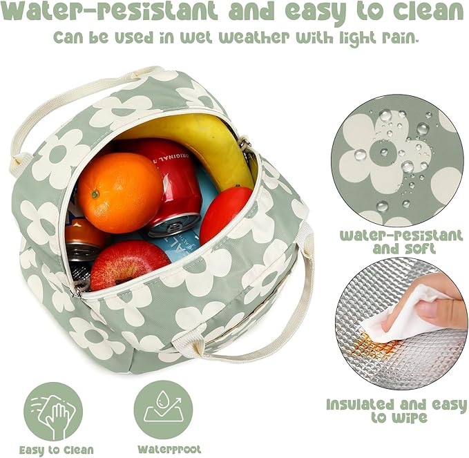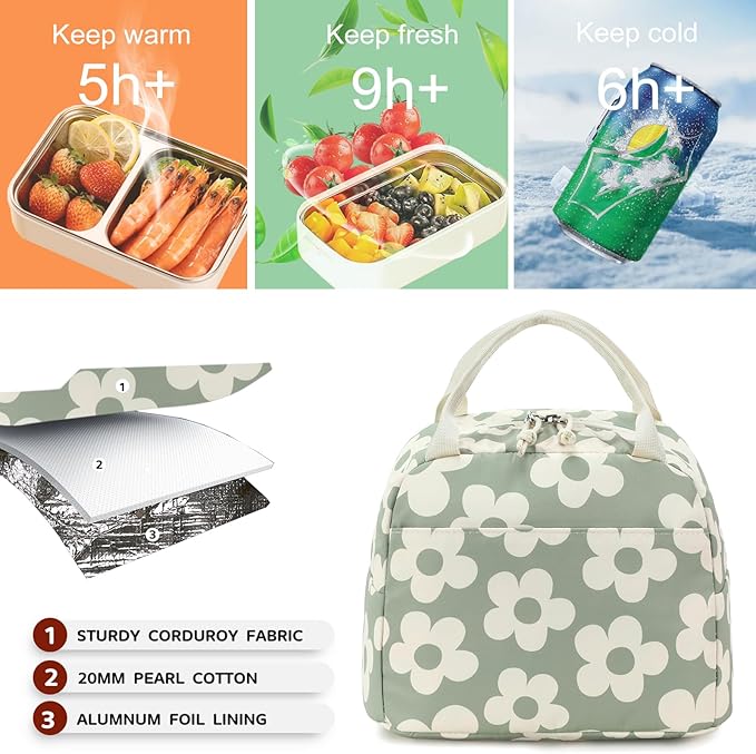 - Spacious and Lightweight: Lunch bag women measures L10.6 x W 6.3 x H 8.6inches, 0.38 pounds,Lunch tote bag for girls is spacious enough to fit your lunch box. Insulated Cooler with perfect standard size can keep your food cool or warm. Allow your food to be fresh and delicious.