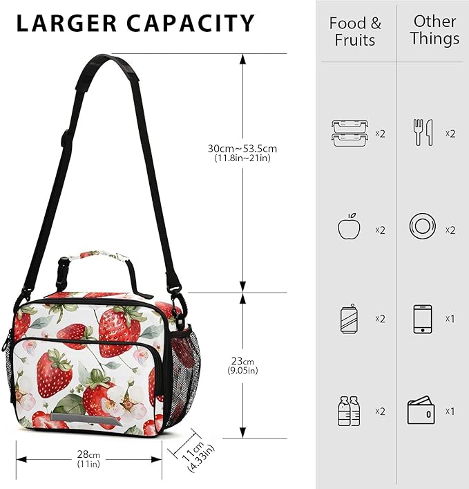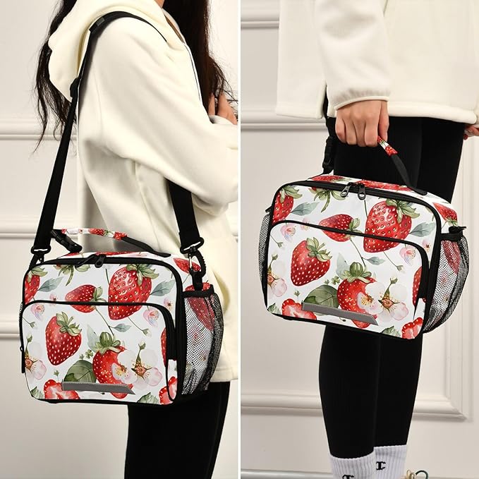 ALAZA Strawberries Girls Lunch Box Kids Lunchbox Insulated Reusable Meal Container Lunchbag with Shoulder Strap