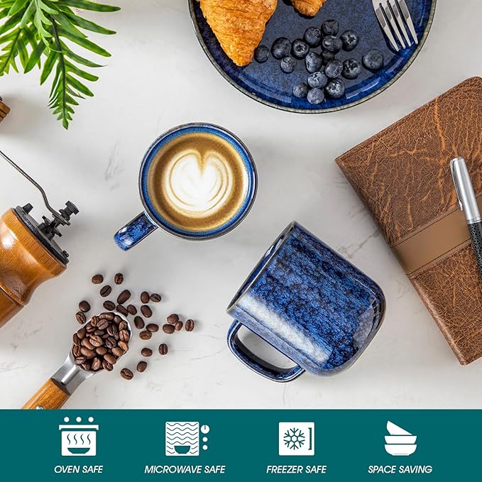 vancasso STARRY Coffee Mugs Set, 16 oz Ceramic Coffee Cups for Americano Hot Tea Iced Coffee Cold Brew Cocoa Milk Stoneware Mugs Set of 6, Dishwasher & Microwave Safe, Blue