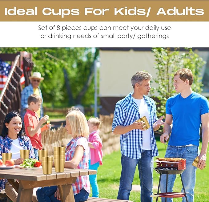 - Sufficient Quantity: what you will receive are 8 pieces of stainless steel drinking cups in gold, with double wall designs; Abundant quantities and moderate size could basically meet your daily use or party drinking needs, or you can share them with others