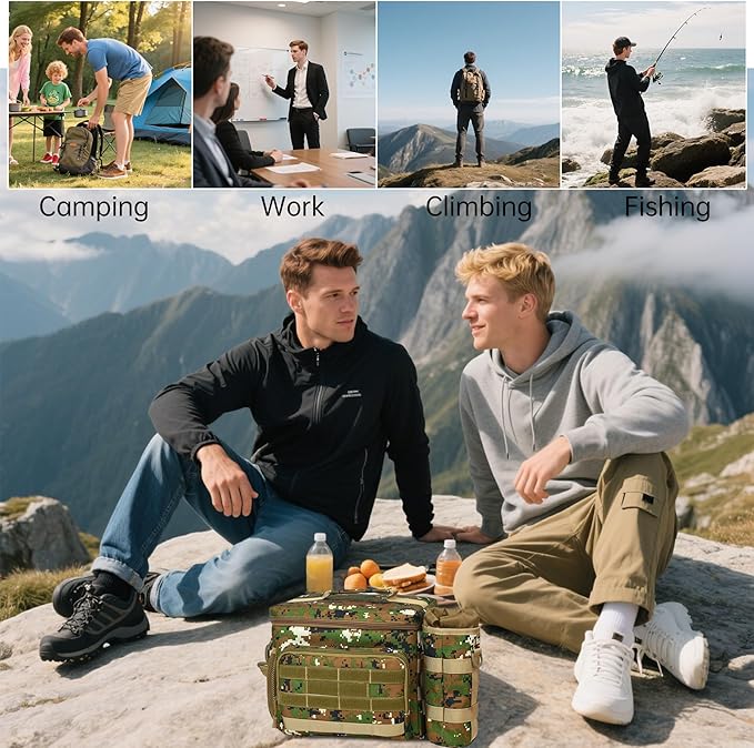 Tactical Lunch Box for Men, Insulated Lunchbox Waterproof Leakproof Cooler Lunch Bag for Work Outdoor Picnic, 24 Cans/15 L, JungleGreen