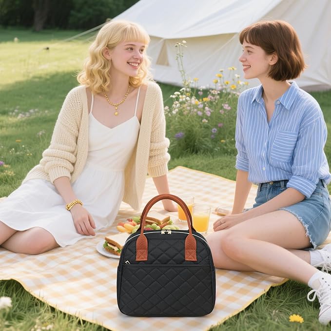 - 【FASHION ITEMS】The front of this lunchbox is designed with quilted. Simple and elegant design is a great item to pair with different clothes every day. It can blends in with your attire and isn’t too flashy or tacky. This bag looks good with purse and briefcase.