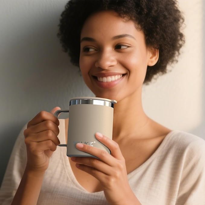 - 【12oz Ideal Capacity】12 ounces (about 355ml) capacity, suitable for coffee, tea, hot chocolate, and other drinks. Lightweight and portable, TILUCK coffee travel mug with handle is an ideal companion for office commuting and camping travel