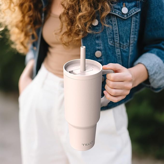 - 【Easy to Clean】The TILUCK 40 oz tumbler with Handle is dishwasher safe. Both the top silicone straw and the inner clear straw are removable, allowing for thorough, worry-free cleaning and better hygiene