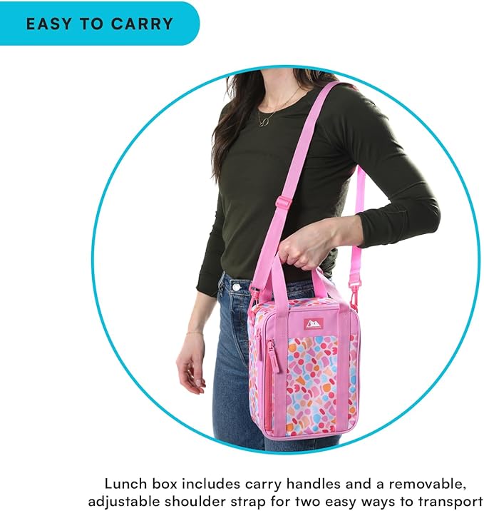 - EASY TO CARRY: Lunch box includes carry handles along with an adjustable, removable shoulder strap for two convenient ways to transport.