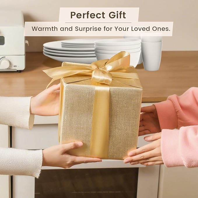 - ELEGANT DESIGN: The dinner set features an elegant and modern design. Each plate, bowl and cup is embellished with delicate linear embossed patterns. The non-slip design on the bottom is both stable and warm. The combination of 16 sets in white colors brings a touch of art to your dining table. It is perfect as a gift and a blessing for holidays, birthdays, weddings and housewarming