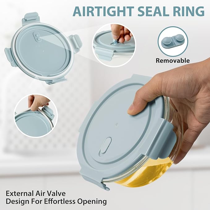 - LEAKPROOF EASY OPENING LIDS: These food storage containers feature airtight lids to prevent leaks and keep fresh with 4 locking tabs and seal ring that are BPA-free, the removable air valve could help opening effortless. Save food for tomorrow or warm today's lunch with less worries.