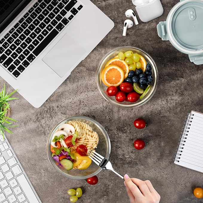- 4-PIECE SET: Set includes (4) 2.5-cup round glass containers with lids. These are the perfect containers for meal prepping or storing leftovers, soup, salad, etc. They also resist stains, odors, and flavors.
