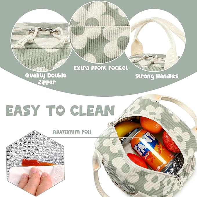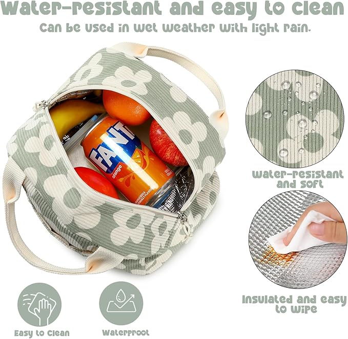 Bluboon Lunch Bag for Women Men Cute Corduroy Lunch Tote Bags Reusable Insulated Lunch Box Large Capacity Reusable Insulated Cooler for Work Picnic or Travel