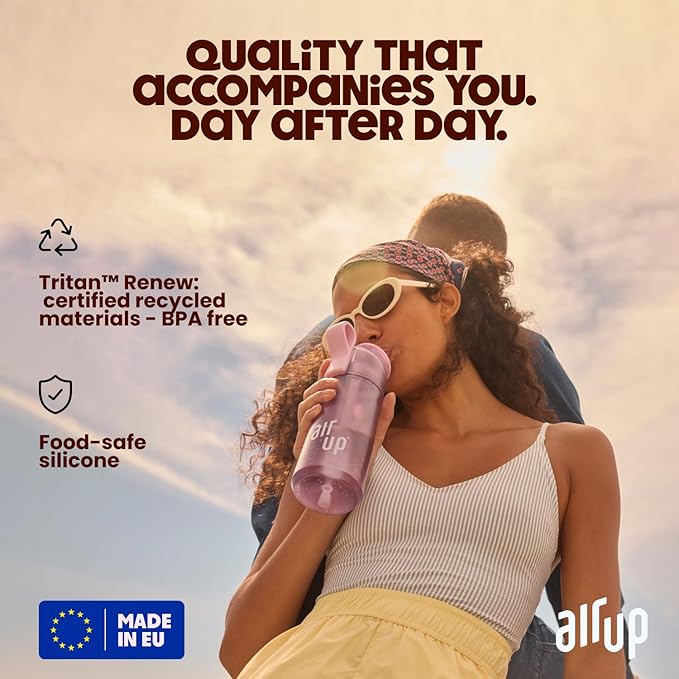 - RELIABLE AND SAFE - WITH AND WITHOUT CARBON ACID: The dishwasher-safe air up bottle made from food-safe silicone and BPA-free Tritan is easy to refill and can be closed tightly. The ideal companion for school, office, gym and when travelling.