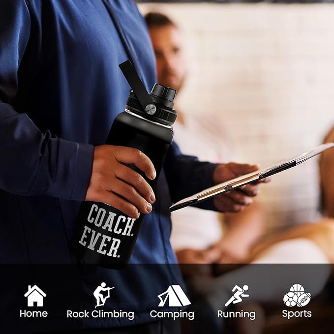Sport Coach Insulated Engraved Stainless Steel Water Bottle 32oz, Best Coach Ever, Vacuum Chug Lid Travel Tumbler For Men Friends Coaches, Gift for Birthday Christmas