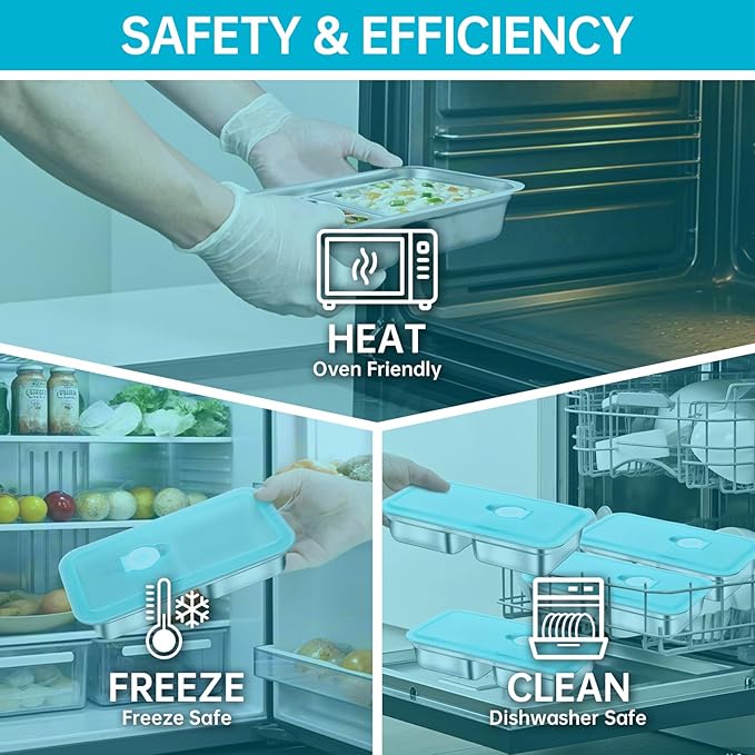- Excellent Food-Grade 304 Stainless Steel – Made from premium durable 304 stainless steel! These reusable snack containers offer a rust-resistant, eco-friendly way to store snacks. Whether it's sandwiches, fruits, or salads, these containers are a safe, high-quality option for stainless steel bento boxes