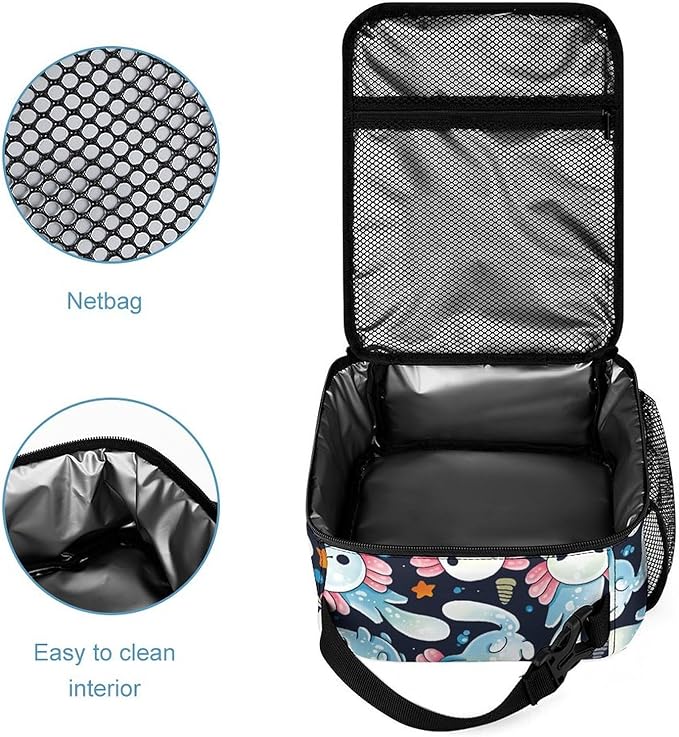Axolotl Lunch Box 10 Inch Reusable Insulated Axolotl Lunch Bag