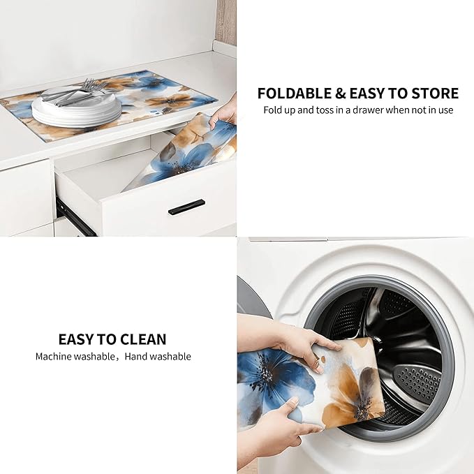 Watercolor Flowers Dish Drying Mat for Kitchen Counter Microfiber Super Absorbent Non-Slip Dish Drying Pad for Countertops Dishes Utensils Stylish Quick-Dry Machine Washable 18x24 Inch