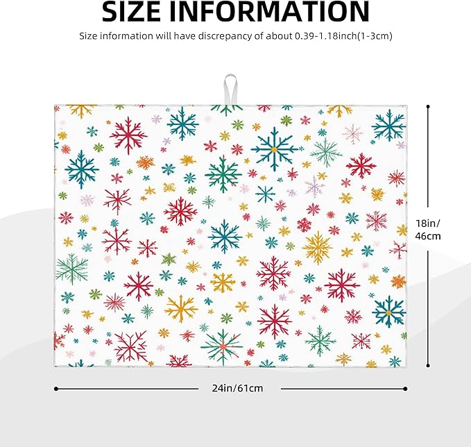 Christmas Snowflake Dish Drying Mat for Kitchen Counter Microfiber Super Absorbent Non-Slip Dish Drying Pad for Countertops Dishes Utensils Stylish Quick-Dry Machine Washable 18x24 Inch