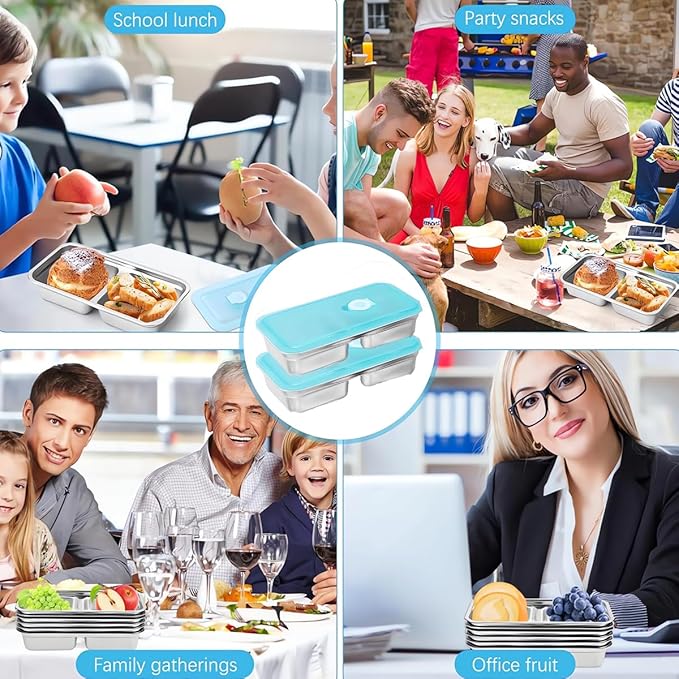 2PCS Snack Containers with Lids, Stainless Steel Snack Container, Double Compartment Grab and Go Snack Containers for Travel and Outdoor