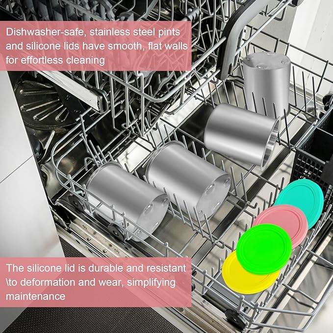 Stainless Steel Pint Containers & Lids Compatible with Ninja Creami ice Cream Maker NC500, NC501, CN501CO Delux Seriesā 6 Pack, 24 oz, Silicone Lids, BPA-Free, Dishwasher Safe