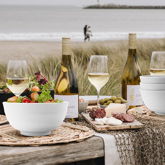 60 OZ Wheat Straw Bowls, Large Popcorn Bowl Sets of 6, Unbreakable Large Serving Bowls for Kitchen, Microwave and Dishwasher Safe Big bowl for Eating, Soup, Ramen, Cereal- White