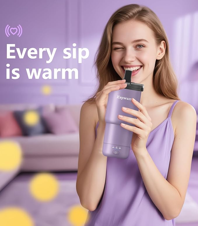 - 【10 Hours of Smart Heating】 The Kepwam self-heating travel mug features a powerful battery. When fully charged and used on its own, it keeps your coffee at the perfect temperature for up to 10 hrs—no loss of flavor, no lukewarm sips. You can use it independently or pair it with the charging dock to keep your drink warm all day long.