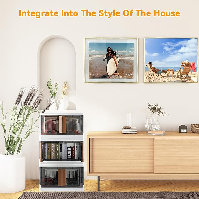 - 【Minimalist Design】The beautiful and elegant plastic transparent appearance can adapt to different home decoration styles. The front double door design and top opening design make it very convenient for you to pick up and place items.