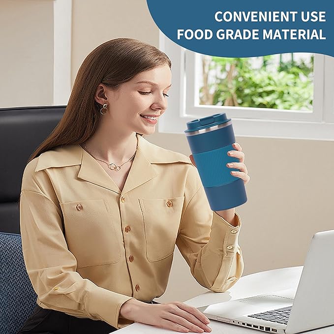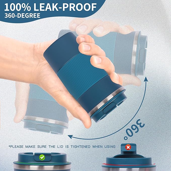 - EASY TO CLEAN AND COMFORTABLE GRIP: The large opening design makes the insulated coffee mug easy to clean, the travel coffee mug comes with an eco-friendly one-handed flip-top snap closure, the screw-on silicone sleeve is easy to carry and makes one-handed drinking comfortable and safe, the sealing silicone strips and screw-on lid are designed to prevent spills.