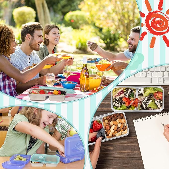 - Versatile Usage: Two compartment snack container are suitable for storing a variety of items such as snacks, fruits, dressings and more. Metal snack containers with lids are perfect for situations like office breaks, outdoor picnics, road trips and parties, meeting diverse storage needs