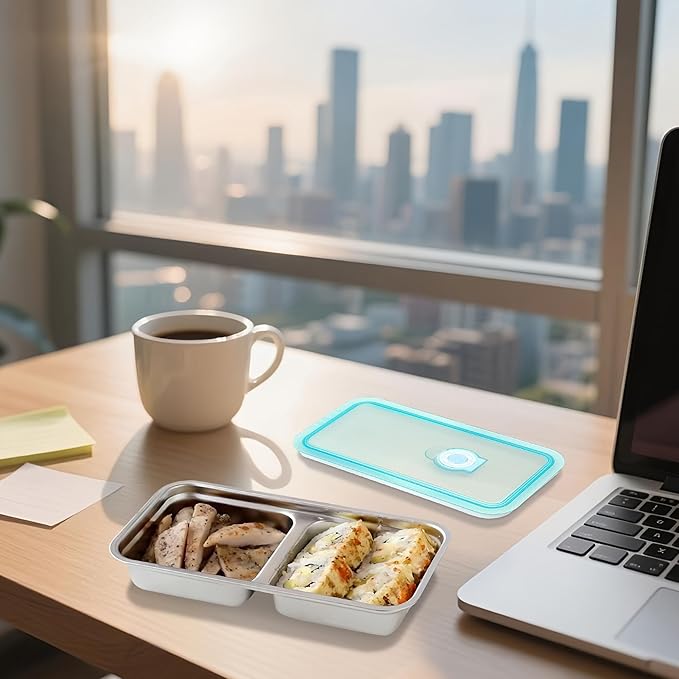 Stainless Steel Snack Containers - Reusable Double Compartment Bento Box with Lids, Leakproof & Dishwasher-Safe Food Storage for Travel, Camping, Takeout
