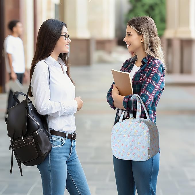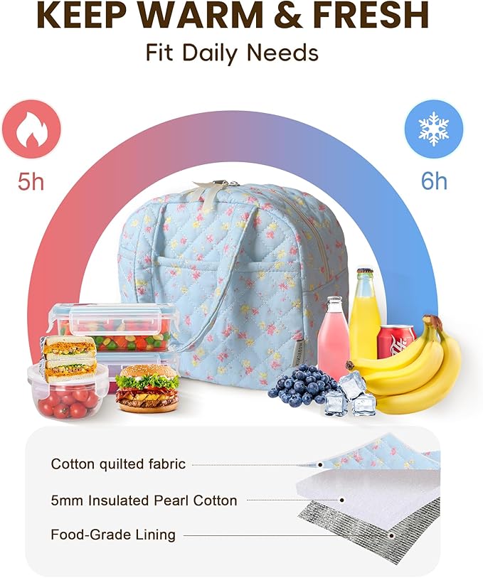 - Comfortable Cotton-Soft Handles-The double handles are made of the same quilted cotton material and padded for extra comfort. Whether you're commuting, heading to class, or enjoying a picnic at the park, it’s easy to carry all day without strain.Designed with a reinforced aluminum insulation layer, this bag keeps meals warm or cold longer—great for busy professionals, students, or travelers who need reliable temperature control on the go