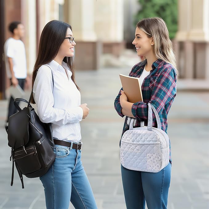 - Comfortable Cotton-Soft Handles-The double handles are made of the same quilted cotton material and padded for extra comfort. Whether you're commuting, heading to class, or enjoying a picnic at the park, it’s easy to carry all day without strain.Designed with a reinforced aluminum insulation layer, this bag keeps meals warm or cold longer—great for busy professionals, students, or travelers who need reliable temperature control on the go