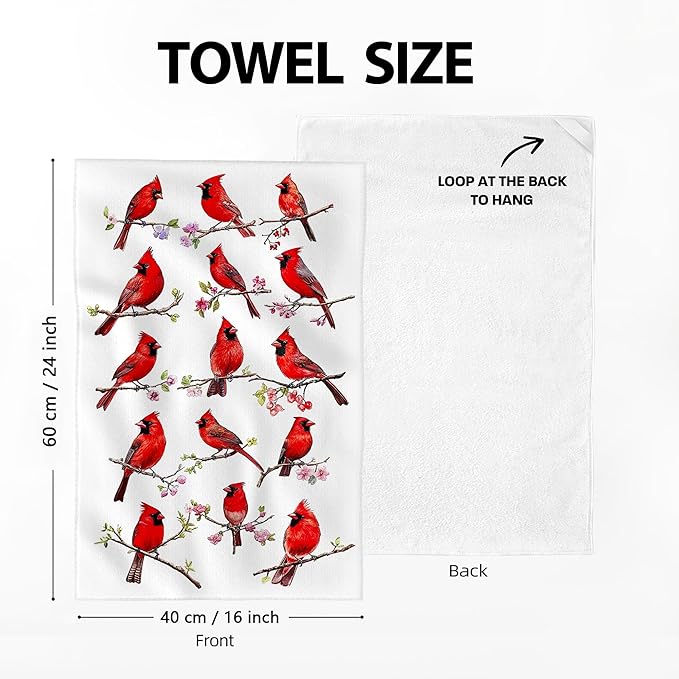 - Size: Cute cardinal kitchen towels and dishcloths sets of 2, size 16x24 inches/40x60 cm, cardinal kitchen dish towels for drying dishes are suitable for spring, summer, fall, winter