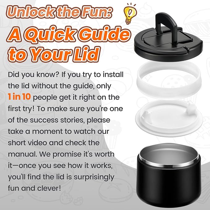 - Leak Proof Design: The compression vacuum design with seal washer guarantees 100% leak-proof, the hidden handle and hidden folding spoon are designed for easy opening and carrying. Don't worry about it spilling out and messing up kids lunch bag. Note, Pay attention to the front and back of the silicone ring when installing, otherwise it will lead to container leakage.
