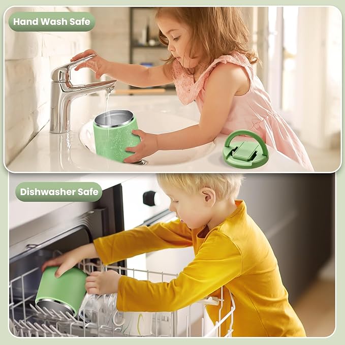 - New Buckle of Lid: The food containers feature a press-seal construction, allowing you to simply pull the handle upwards to 90° to open the lid/ 90° downward closure. This design is maintaining vacuum no need to rotate the lid open . Additionally, the container comes equipped with a carrying handle, making it convenient for your child to carry it. Whether at school, an outdoor outing, or a family gathering, this user-friendly design empowers children to confidently enjoy their delicious meals.