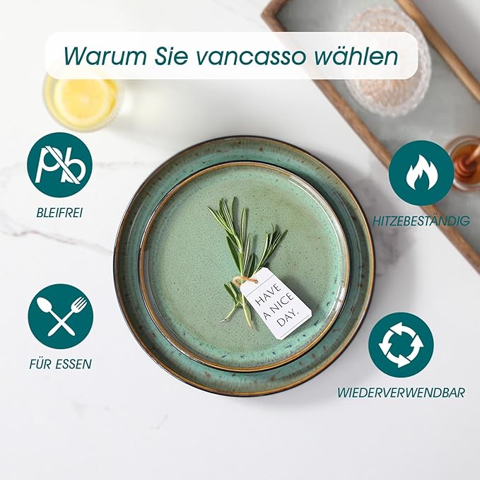 - Microwave & Dishwasher Safe – Thanks to its high-fired (2548°F+) mineral glaze, vancasso plates and bowls sets features an ultra-stable, moisture-resistant surface. The dense glaze structure prevents thermal shock and dulling or chemical wear, outperforming regular ceramics in long-term durability.