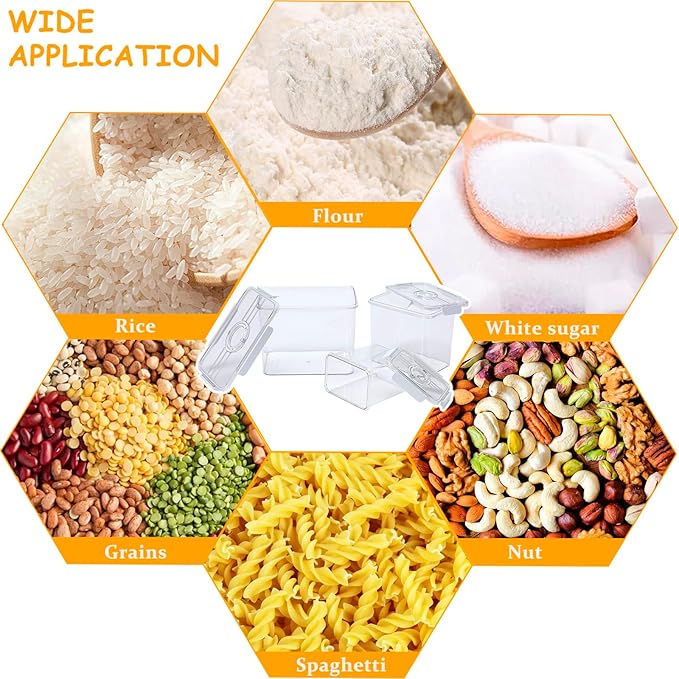 - Premium Durability & Material:Made from high-quality plastic, these dry food storage containers are built for long-term kitchen use. The sturdy construction resists cracks and stains, making them ideal for storing flour, sugar, rice, and more.